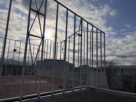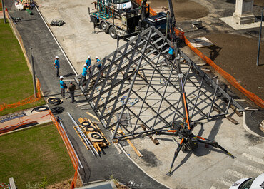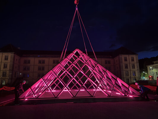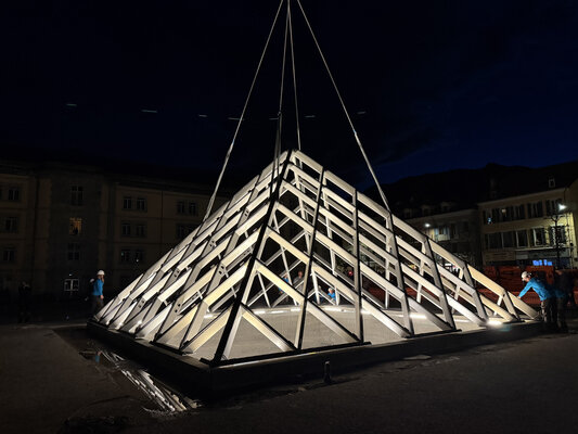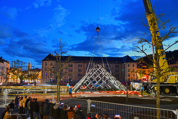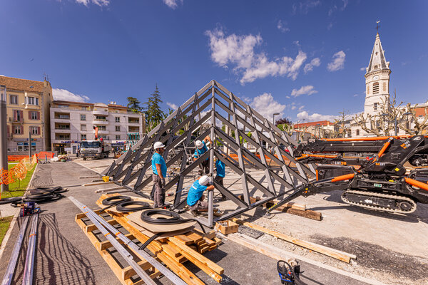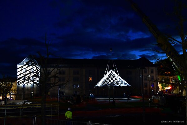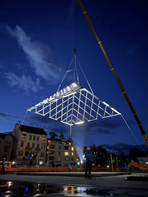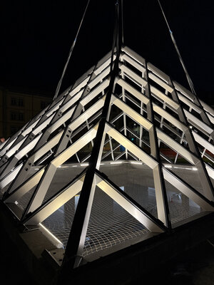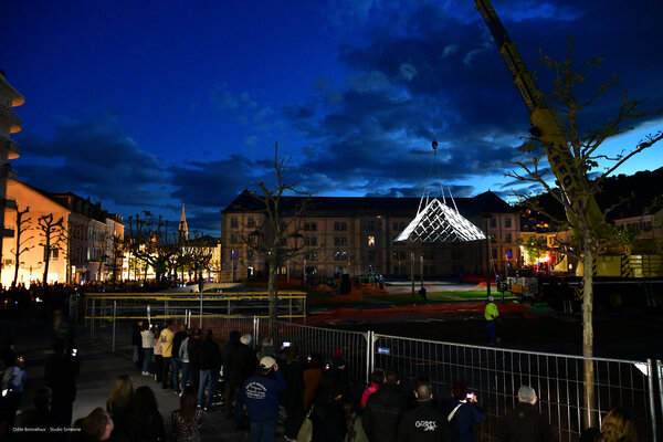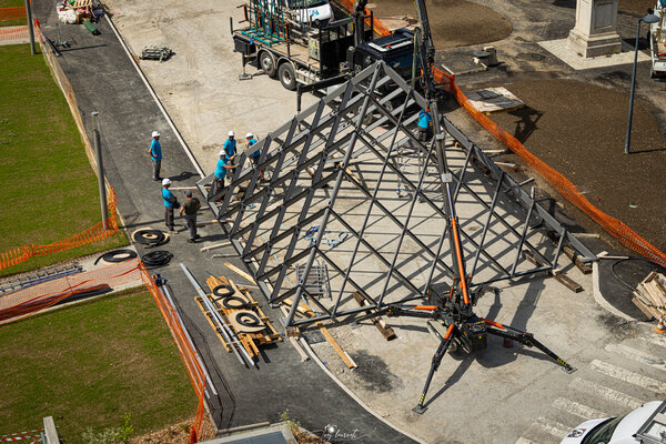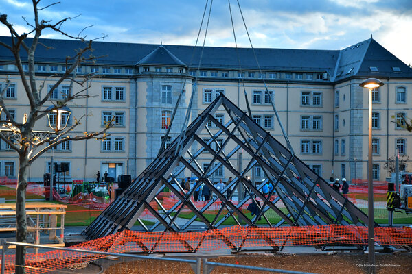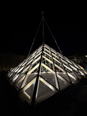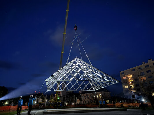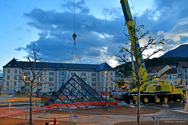 Découvrez en image la pose de notre pyramide en plein❤️ de Gap (05) !6 tonnes , 6.1 m de ht, 10 m de coté.1 ère étape: Le levage de l'ossature !