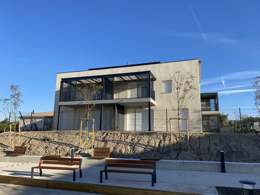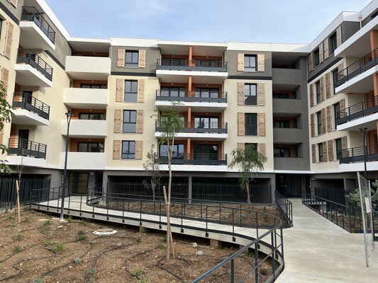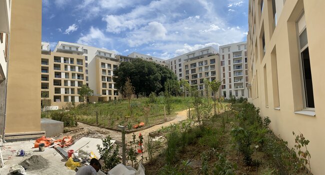 593 logements dont : 172 logements étudiants, 57 logements résidence service séniors, 157 logements sociaux (dont 53 en VEFA pour SNI), 207 logements en accession libre. Label NF HABITAT Livraison juin 2022.